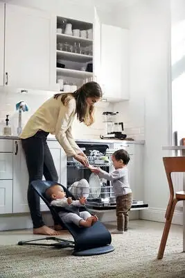 Denne klassiske vippestolen fra BabyBjörn har fått et nytt og lekkert design, med en stabil bunnplate og en grå ramme som skaper et mykere inntrykk. Bliss er ergonomisk utformet med god vektfordeling, så både hode, nakke og rygg har ordentlig støtte.Vippestolen er sammenleggbar og har tre høydenivåer for lek, hvile og søvn. Stolen trenger ikke batterier da den gynger ved dine eller barnets egne bevegelser. Når barnet har lært seg å sitte selv kan trekket snus slik at vippestolen blir til en deilig lenestol, noe som forlenger Bliss brukstid ytterligere. En vippestol som er perfekt når du vil ha hendene frie og samtidig la barnet ditt hvile eller leke trygt!Anbefalt alder: Fra 0 måneder – ca 2 år.Maksvekt: 9 kg når produktet brukes som vippestol.Maksvekt: 13 kg når produktet brukes som barnestol.Mål: H10 x B39 x D89,5 cm.Vekt: 2,3 kg.Materiale: 100% bomull, Oeko-Tex Standard 100 Klass 1-sertifisert.Vaskeanvisning: maskinvask 40°C, skal ikke tørketrumles.Farge: blå.