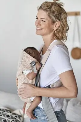 BabyBjörn Mini er en liten og praktisk bæresele fra BabyBjörn som er perfekt for nyfødte babyer. Med stegløs justering kan du anpasse selen i takt med at barnet ditt vokser. Dessuten har selen justerbar støtte for hode og nakke. Bæreselen er myk og følsom og setter barnet ditt i en ergonomisk posisjon. Mini er ekstra bred til sammenligning med BabyBjörns Original barnesele – hele 10 cm bredere på det bredeste punktet. Dette gir bedre støtte til barnets ben og hofter i innovervendt posisjon. Et svalt og luftig nettingstoff med myk innside slipper inn mye luft og tørker raskt etter vask. Det er laget i tre lag, der mellomrommene består av en tynn fiber-tråd som gjør at selen puster. – Kan brukes direkte fra fødsel og opp til 11 kg. – Bensløyfene skal brukes for barn mellom 3,2–4,5 kg- Svalt stoff som puster og tørker raskt etter vask- Stabil og justerbar hodestøtte- To bæreposisjoner, innover- og utovervendt-Kan vaskes i maskin