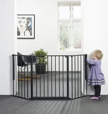 BabyDan Flex M (tidligere Flex 3) er en fleksibel grind som inneholder 2 seksjoner samt 1 grindåpning og veggfester (2 kortere seksjoner og 1 lang). Godkjent i henhold til EN1930:2011.Flex er et system av fleksible seksjoner med mange ulike bruksområder – kan anvendes bl.a. mellom brede døråpninger, hvelv, foran verandadøren, foran grillen m.m. for å gi barnet ditt et sikkert og trygt miljø. Flex-seriens brede grindåpninger kan åpnes med en hånd, noe som gjør den enkel å bruke. Grinden passer til døråpninger som er minst 90 cm og maks 145 cm. Farge: Svart.Tilbehør til Flex M, L og XL kan kjøpes separat for at du skal ha muligheten til å forlenge, enkelt flytte grinden eller skape en ekstra dørseksjon.Dybde: 3,5cmHøyde: 71cmBredde: 146cmAvstand mellom stengene: 5,5 cm- 2 x Forlengning Medium 33 cm.- 1 x Dørseksjon 72 cm.- 2 x Veggfeste.Se under tilbehør!