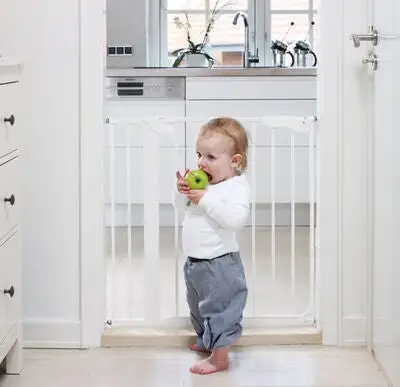 BabyDan Grind Danamic er utstyrt med en diskré indikator som tydelig viser når grinden er korrekt montert. Danamic er en ekte trykkmontert sikkerhetsgrind og du trenger derfor ikke borre eller skru. Den etterlater heller ingen merker i karm eller vegg etter bruk. Kan åpnes fra to sider, og er enkel for voksne å åpne med kun en hånd. Verktøy medfølger. Godkjent i henhold til EN 1930:2011. Produsert i Danmark. OBS! Det er å anbefale å kun ha grinden montert nederst i trappen eller i en døråpning, ikke øverst i trappen. Mål:Høyde: 73 cm.Standardbredde: 73–80,5 cm.Dybde: 3,5 cm Avstand mellom stengene: 5,5 cm Farge: Hvit.