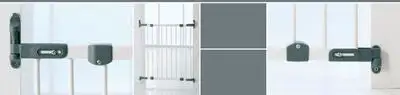 BabyDan Grind med skruer Flexi Fit, passer i nesten alle åpninger da veggbeslagene kan vinkles slik at de kan sitte både på innsiden og på utsiden av dørkarmen. Når grinden er montert på innsiden av en dørkarm, passer den til åpninger mellom 67-105,5 cm. Om den monteres på utsiden kommer det maksimale målet til å være ca. 5 cm mindre. Grinden er 74 cm høy. Materiale: metall.Farge: hvit.