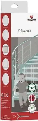 En 2-pakning med Y-spindler fra BabyDan. Med en Y-spindel kan du montere en sikkerhetsgrind mot en rundt flate, f.eks. en stolpe eller lignende. Y-spindelen har en gummioverflate, som gjør at den ikke etterlater merker.