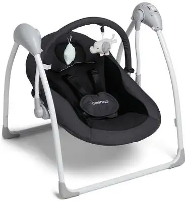 Elektrisk Dally vippestol fra Beemoo i polyester med en lekebue. Den har to justerbare vippeposisjoner, perfekte når barnet ønsker å hvile eller sove, og et avtakbart trekk. Vippestolen har en ramme i plast og metall og en justerbar sikkerhetssele. Gyngefunksjonen aktiveres via den medfølgende strømkabelen, eller med AA-batterier. Når strømkabelen er tilkoblet kan batteriene ikke brukes som strømkilde. Batteritype AA. Batterier er ikke inkludert. – Enkel å legge sammen og ta med. – Tre tidsintervaller: 15, 30 og 60 minutter. – Fem gyngehastigheter. – Musikknapp med volumkontroll. – 12 valgbare melodier. – Gyngefunksjonen kan stoppes med en nødstoppknapp. – Anbefalt alder: fra nyfødt. – Batterier er ikke inkludert.