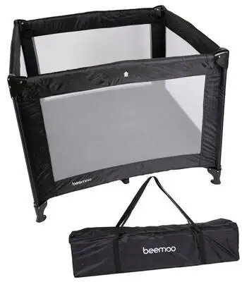 Beemoo Lekegrind Svart er en praktisk lekegrind du kan ta med deg på reisen. Den kan enkelt legges sammen og bæres av gårde i vesken som inngår. En tynn madrass/bunnplate i svart nylon inngår også.