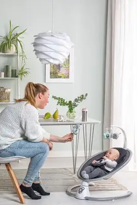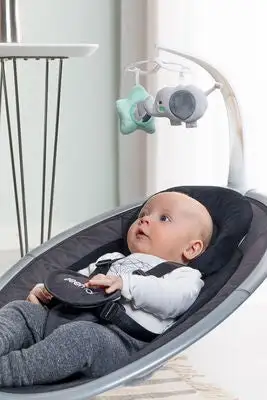 Beemoo Simple Rocker, en fin vippestol med et stilig design. Gyngefunksjonen får vippestolen til å bevege seg sidelengs og kan stilles inn i fem forskjellige hastigheter. Musikken består av flere rolige melodier, volumet kan heves og senkes. Stolen har en timer-funksjon som kan stilles til 15, 30 eller 60 minutter.Vippestolen har en avtakbar lekebøyle med to fine og myke figurer. Perfekt for lek, eller for å hjelpe babyen din med å sovne på kvelden!Beemoo Simple Rocker Vippestol kan brukes med vanlig strømkabel, som inngår ved kjøp, alternativt med fire 1.5V AA/LR6 batterier (inngår ikke). Husk å ta ut kabelen fra uttaket ved bruk av batteriene.- Musikk og vipping styres med den medfølgende fjernkontrollen.- Brukes under tilsyn av voksne.Batterier er ikke inkludert.Anbefalt alder: fra 0-6 måneder.