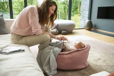 Vippestolen Växa fra Doomoo fungerer som en vippestol med justerbar gynging for de minste, eller en sittepuff for de litt eldre barna som kan sitte selv. Den medfølgende justerbare selen kan tilpasses etter barnet og kan brukes til barn som veier opptil 25 kg. Den kan deretter fjernes når barnet har vokst, slik at stolen kan brukes som en puff med en lett tilbakelent ryggstøtte.Den justerbare gyngefunksjonen kan enkelt fjernes ved en rask justering. Vippestolens overdel med sele er laget av en blanding av GOTS-sertifisert økologisk bomull og polyester, med et fyll av polyuretanskum. Stolen er fylt med EPS-kuler i polystyren.Anbefalt alder: fra 0 måneder.