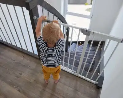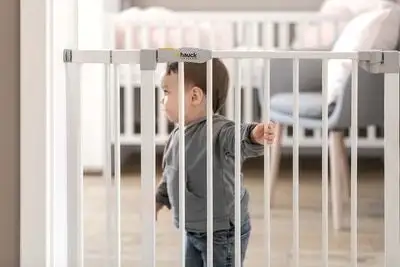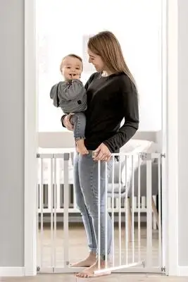 Haucks Close n Stop er en sikkerhetsgrind som du kan plassere for å sikkerstille at barnet ditt ikke kan ta seg til trappen eller gjennom døren. Sikkerhetsgrinden har en smart stengefunksjon med barnesikkert lås. Du får dessuten med en 9 centimeter lang forlengning. Den er enkel å montere og spenne fast, uten at du trenger å borre i karmen eller veggen, og det blir ingen merker når du skal ta den bort. Den kan dessuten åpnes fra begge sider med en hånd.