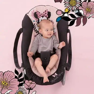 Rocky vippestol fra Hauck gir babyen din en herlig komfort uansett om den vil spise, hvile eller leke. Det myke trekket gir en romslig plass og har et klassisk trykk med Minni Mus.Trepunktsbeltet sørger for at barnet ditt sitter trygt, takket være stabile håndtak kan du ta enkelt med deg vippestolen (ikke bær stolen med barnet sittende i den).For enkelhets skyld kan ryggstøtten justeres i tre forskjellige posisjoner med en hånd. Gyngefunksjonen er låsbar, noe som betyr at du kan være sikker på at barnet ditt sitter stødig for eksempel under måltider.Anbefalt alder: fra nyfødt og opp til 9 kg.