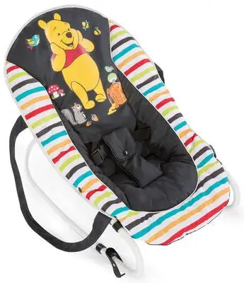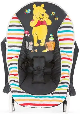 Rocky vippestol fra Hauck gir babyen din en herlig komfort uansett om den vil spise, hvile eller leke. Det myke trekket gir en romslig plass og har et klassisk trykk med Ole Brumm.Trepunktsbeltet sørger for at barnet ditt sitter trygt, takket være stabile håndtak kan du ta enkelt med deg vippestolen (ikke bær stolen med barnet sittende i den).For enkelhets skyld kan ryggstøtten justeres i tre forskjellige posisjoner med en hånd. Gyngefunksjonen er låsbar, noe som betyr at du kan være sikker på at barnet ditt sitter stødig for eksempel under måltider.Anbefalt alder: fra nyfødt og opp til 9 kg.
