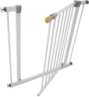 Haucks Stop N Safe er en sikkerhetsgrind du kan plassere foran døråpninger og trapper, for å sikre hjemmet ditt for den minste i familien. Spennegrinden har en smart lukkefunksjon med barnesikker lås. Grinden er enkel å montere og spenne fast. Du trenger ikke å bore i dørkarmen eller veggen, og grinden etterlater ingen merker når du tar den bort. Den kan dessuten åpnes i begge retninger, med bare én hånd.Passer døråpninger på 75-80 cm.