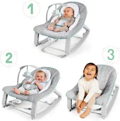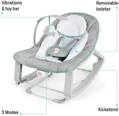 En fin og praktisk vippestol fra Ingenuity, designet med foreldreskap i tankene. Denne multifunksjonelle og moderne vippestolen kan settes i tre forskjellige posisjoner, for at barnet ditt skal være glad og fornøyd.Vippestolen kan gynge frem og tilbake, men kan også gjøres om til et stasjonært sete med beroligende vibrasjoner. Lekebøylen kan også fjernes, så at barnet ditt får en komfortabel gyngestol når det blir eldre.Yttermaterialet består av mykt tøy, og sikkerhetsbeltet har et overtrekk av myk fleece, for å beskytte barnets følsomme hud. Det inngår også en ekstra nakkestøtte, som kan fjernes når barnet blir større. Vippestolen har også legges sammen for enkel transport eller oppbevaring, når den ikke brukes.Anbefalt alder: fra 0 måneder.