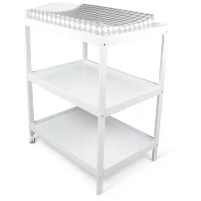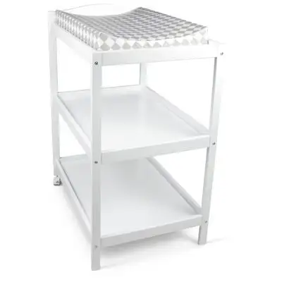 Et fint stellebord, fra JLYs serie Dream Basic. Dette stellebordet har to hylleplan og god plass til stellematten. To av bordbeina har hjul, så dere enkelt kan flytte stellebordet rundt i hjemmet.Den nyeste modellen av Dream Basic har høyere kanter rundt stelleflaten. Anbefalt alder: 0-36 måneder. Maksimal belastningsvekt: 11 kg. Mål: H92 x B54 x D74 cm.Mål på stelleflaten: B49 x 70,5 cm.Mål mellom hylleplanene: 35 cm. Anbefalt maksstørrelse på stellematte: 50 x 67 cm.Anbefalt makstykkelse på stellematte: 3 cm. Materiale: tre. Farge: hvit. OBS! Stellematte inngår ikke.