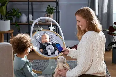 LUMI er en moderne og praktisk vippestol fra Kinderkraft. LUMI har mange bra funksjoner, inkludert en gyngefunksjon med fem forskjellige posisjoner og tre forskjellige gyngetider. Start gyngefunksjonen med et enkelt trykk på en knapp, og bruk smart-timeren til å stille inn hvor lenge stolen skal gynge. Velg mellom 8, 15 eller 30 minutter. Vippestolen er også utstyrt med en spilledåse med 12 forskjellige melodier, volumet kan justeres.LUMI har et polstret, behagelig sete med et fempunktsbelte, for barnets sikkerhet og komfort. Lekebøylen er avtakbar. Det er enkelt å slå sammen vippestolen, for praktisk oppbevaring og transport.LUMI kan brukes helt fra babyen din er nyfødt og opp til 9 kg (eller når babyen begynner å sitte opp selv). Drevet av USB-kabel (inkludert) eller batterier (ikke inkludert).