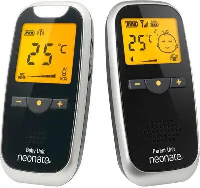 Neonate BC-5800D Black/Silver er en digital babycall som kombinerer viktige funksjoner med lang rekkevidde, lav stråling og liten størrelse. Litiumbatterier med to års garanti, høy prestasjonsevne og lang levetid. Neonate BC-5800D gir deg frihet samtidig som du kan holde oversikt over barnet ditt. BC-5800D er digital, noe som gir 100% klar lyd uten forstyrrelser. Den digitale senderen gir utmerket lydkvalitet og er utstyrt med forbedret mikrofonfølsomhet. Utformet spesielt for det nordiske klimaet og er en av få babycalls som har temperaturindikator og justerbar temperaturalarm til -19 °C.-Stor skjerm med stor tekst (brukervennlig).-800 meters rekkevidde.-Lav stråling.-Høy batterikapasitet.- 200 timers stand-by-tid.- Lader inngår.-Temperaturindikator med alarm.-LED-lys som indikerer hvilken av babyenhetene som registrerer lyd.- 1450mAh-batteri.