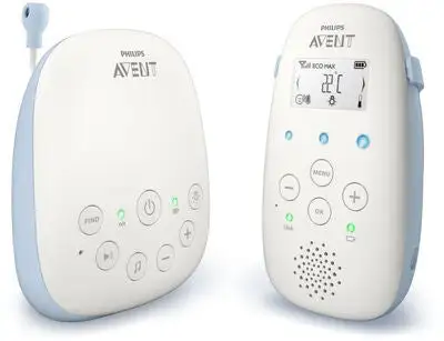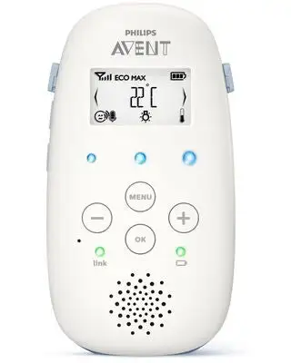 SCD715 er en babycall fra Philips Avent, som bruker DECT-teknologi (Digital enhanced cordless telecommunications). Dette er en støyfri teknologi, som gjør at babymonitoren ikke fanger opp støy fra eksempelvis andre babycaller og mobiltelefoner. Med datakryptering får du en sikker og privat tilkobling, slik at du er den eneste personen som hører barnet ditt. Du kan også kommunisere med barnet ditt gjennom babycallen.Med denne babycallen får du et klart og tydelig lydbilde. Babymonitoren har også andre praktiske funksjoner, som temperaturkontroll, en beroligende nattlampe og vuggeviser. Babycallen har en rekkevidde på hele 330 meter utendørs, og 50 meter innendørs. Den viser også når babycallen er utenfor rekkevidde. Du kan velge om du vil bruke monitoren med ledning, eller trådløst med batterier. Babycallen har en batteritid på opptil 24 timer. Den har også en smart Eco-modus, som automatisk reduserer hvor mye strøm som kreves. Babycallen bruker mindre strøm, jo nærmere foreldreenheten den er.Automatisk kanalvalg: Ja.Frekvensbånd: DECT.Antall kanaler: 120.Volumkontroll: Ja.Tilbehør: 2 stk. nettadaptere, quick start-guide, brukerhåndbok, halsreim.