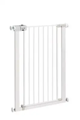 Safety 1st er en bred og praktisk sikkerhetsgrind som er perfekt til å stenge av områder du ikke vil at barnet ditt eller husdyrene skal være. Den har en U-formet trykkpasningsramme, dobbel lås og slam-to-shut lukkesystem. Enkel å montere. Passer i døråpninger som er fra 73 – 80 cm.
