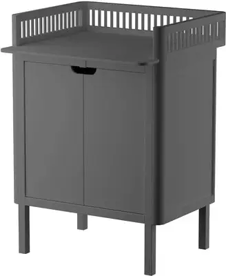 Et fint stellebord med dører, fra Sebra. Stellebordet er laget av slitesterkt materiale, og har en tidløs design og gode oppbevaringsmuligheter. Når barnet ditt har blitt større, kan du ta av stelleborddelen og bruke møbelet som en vanlig kommode. Et både smart og lekker møbel som passer i alle rom.