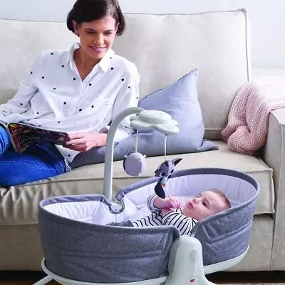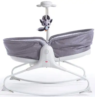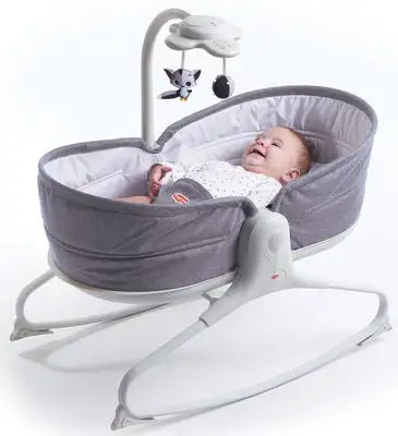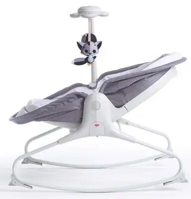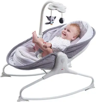 Tiny Love sin 3-i-1 Rocker er en vippestol og en babygym i ett og samme produkt. Beroligende bevegelser vugger babyen, og vippestolen har tre justerbare innstillinger på ryggen. Vippetolens høye kanter tilbyr et sikkert og koselig miljø, og den søte leken spiller musikk og utvikler barnets gripeevne. Med et énhåndsgrep kan du legge den ned til sovestilling, uten å måtte vekke det sovende barnet. Musikkspilleren krever 1 stk C-batteri (ikke inkludert) og 3 stk AAA-batterier (ikke inkludert).