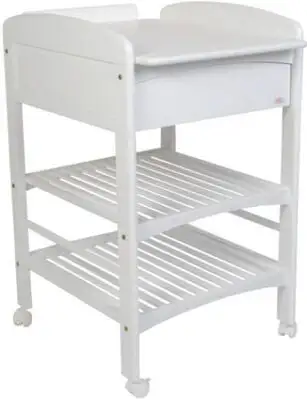 Et pent og praktisk stellebord i tidløs design fra Troll. Stellebordet har én skuff og to hyller, med god plass til oppbevaring av bleier, våtservietter, klær og andre ting. Passer like godt på barnerommet som på badet, og flyttes enkelt med sine fire låsbare hjul.Trolls møbler er produsert med det mål å klare både de europeiske og amerikanske standardene, og produktene testes nøye av flere institutter, både under produksjonen og i etterkant. Møblene er hovedsakelig laget av massiv nordisk bjørk, og malingen og limet som brukes er frie for giftstoffer.Mål:Yttermål: H96 x B60 x D78 cm.Stellematte: H96 x B55 x D75 cm.Materiale: Solid Bjørk. Farge: Hvit.